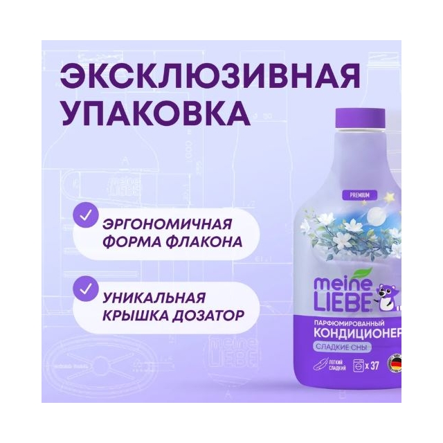 MEINE LIEBE Кондиционер для белья «Сладкие сны», концентрат, 1,5л NEW FORMULA