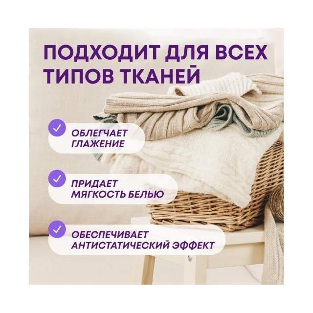 Средство смягчает и разглаживает ткани, сохраняет их цвет и структуру, подходит для всех типов материалов, включая деликатные и детские вещи. Безопасно для септиков. Производится под контролем Grunlab (Германия).