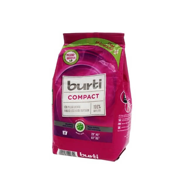 Стиральный порошок Burti Compact для экономичного ухода с защитой цвета и волокон.