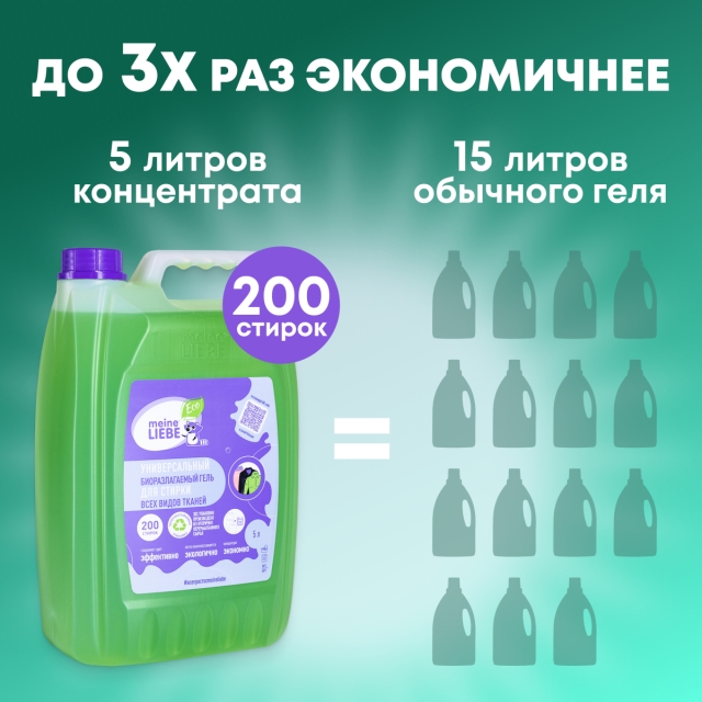 MEINE LIEBE Универсальный биоразлагаемый гель для стирки всех видов тканей, концентрат, 5 л