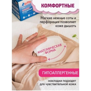 Прокладки для груди Ekitto имеют особую анатомическую форму, незаметны под одеждой и не ограничивают движения кормящей мамы.