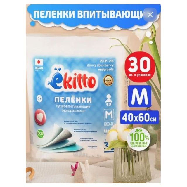 Пелёнки впитывающие EKITTO 60Х40 М 30шт