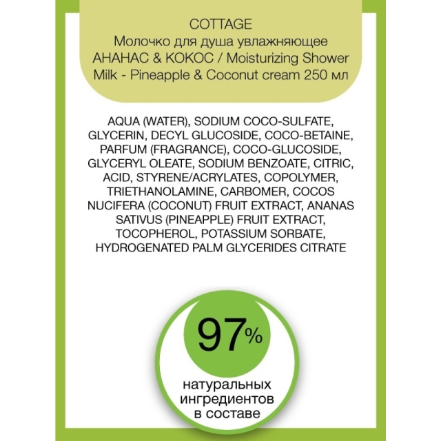 COTTAGE Молочко для душа увлажняющее АНАНАС & КОКОС 250мл