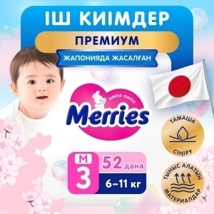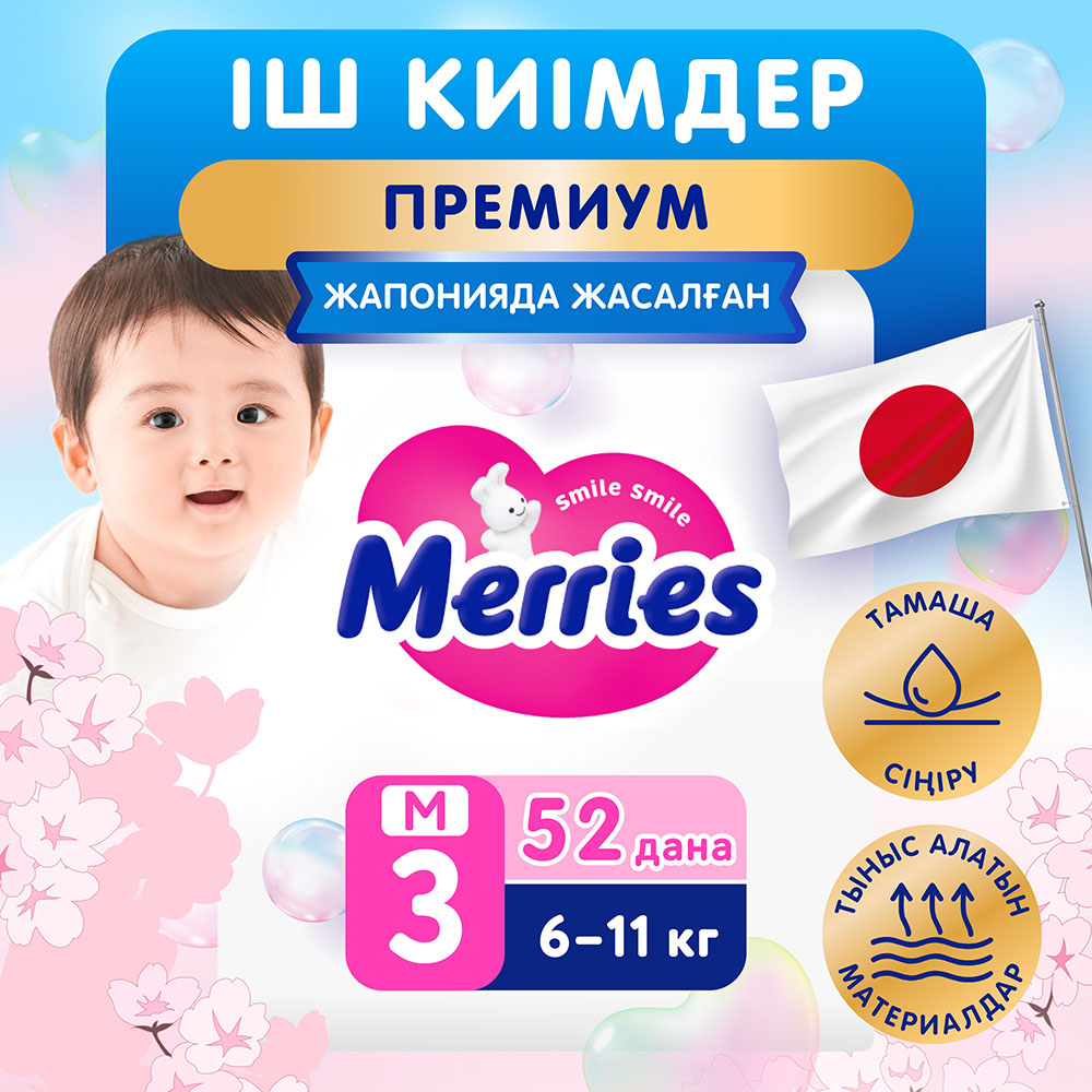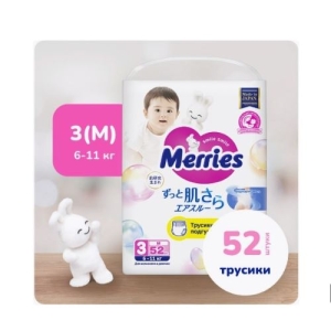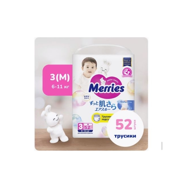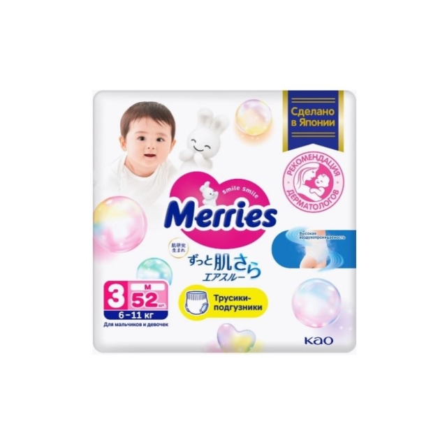 MERRIES Трусики-подгузники для детей размер M 6-11 кг 52 шт