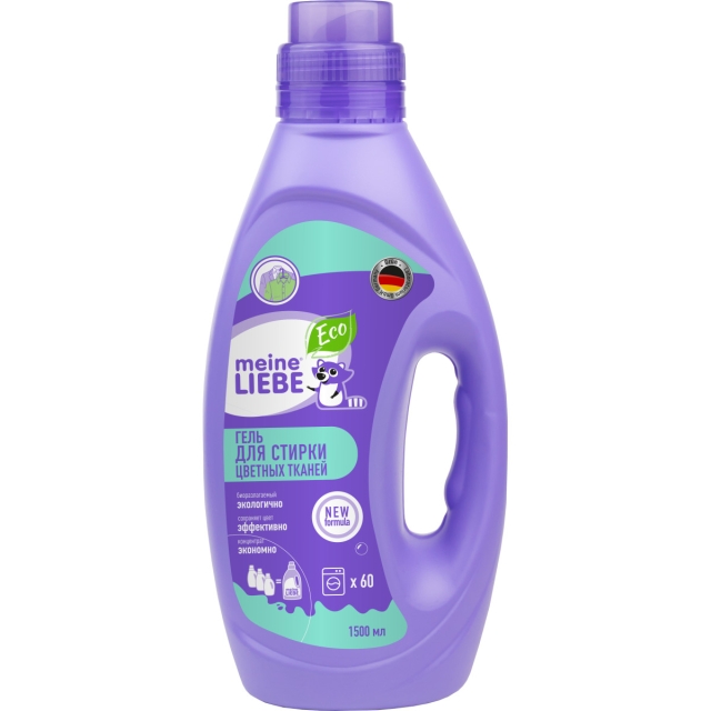 Жидкий порошок Meine Liebe полностью выполаскивается после стирки, не оставляя никаких следов, а его особый состав придает вашей одежде тонкий аромат свежести луговых цветов, создавая приятное ощущение после каждой стирки. Гель можно использовать для цветного (color), белого, черного белья из натуральных, синтетических и смешанных тканей, ручной и машинной стирки автомат при температуре от 20 до 60 градусов С, эффективен даже в прохладной воде и на коротких циклах стирки.
