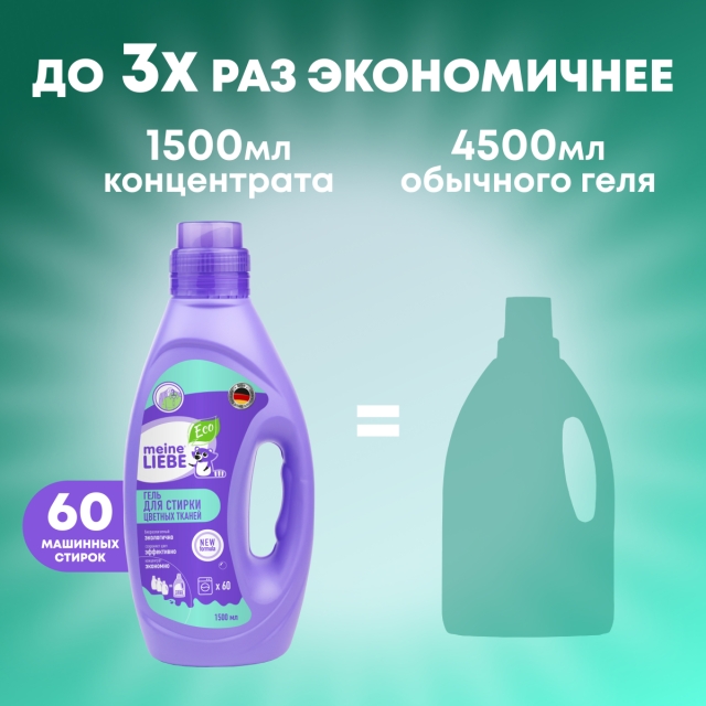 Эко гель-концентрат для стирки цветного белья Meine Liebe (Майне Либе) - это эффективное и экономичное средство, разработанное для стирки цветного белья. Благодаря оптимальному сочетанию энзимов, гель мгновенно удаляет самые сложные пятна и загрязнения, сохраняя первоначальный цвет, яркость и структуру тканей, а также предотвращает образование «катышков».