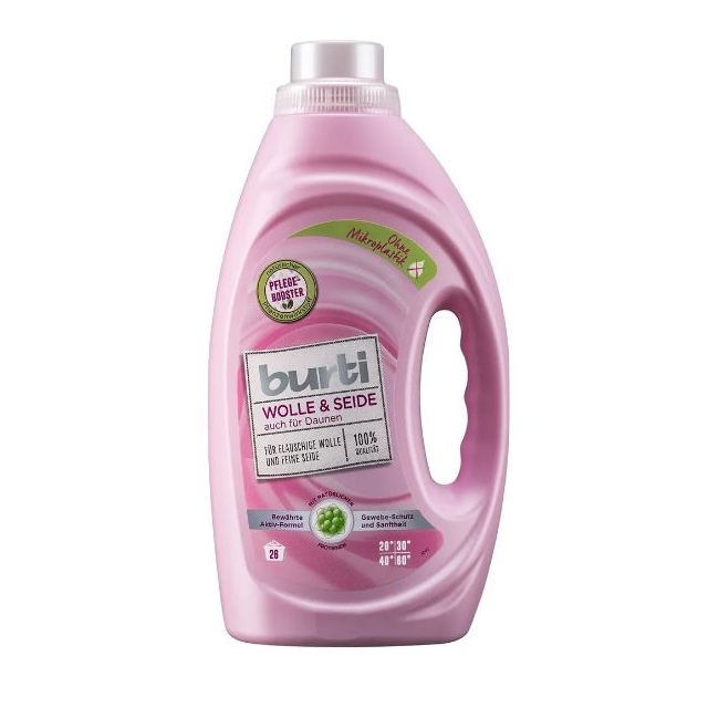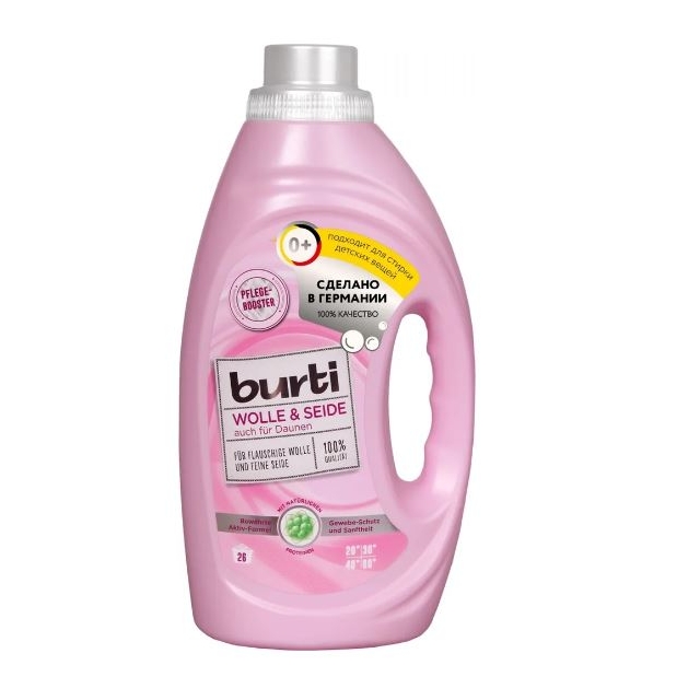 Жидкое средство для стирки Burti Wolle & Seide, для изделий из шерсти и шелка.
