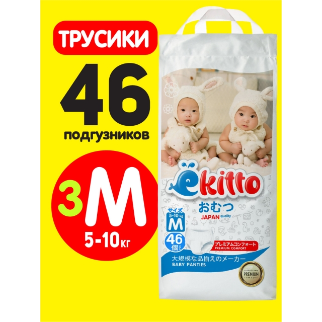 Подгузники-трусики EKITTO Premium M46 5-10 кг