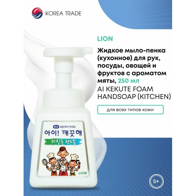Жидкое пенное мыло для рук с ароматом мяты LION Ai Kekute Foam Hand Soap (кухонное) – это универсальный продукт для эффективного очищения рук, а также для мытья посуды, овощей и фруктов на кухне.