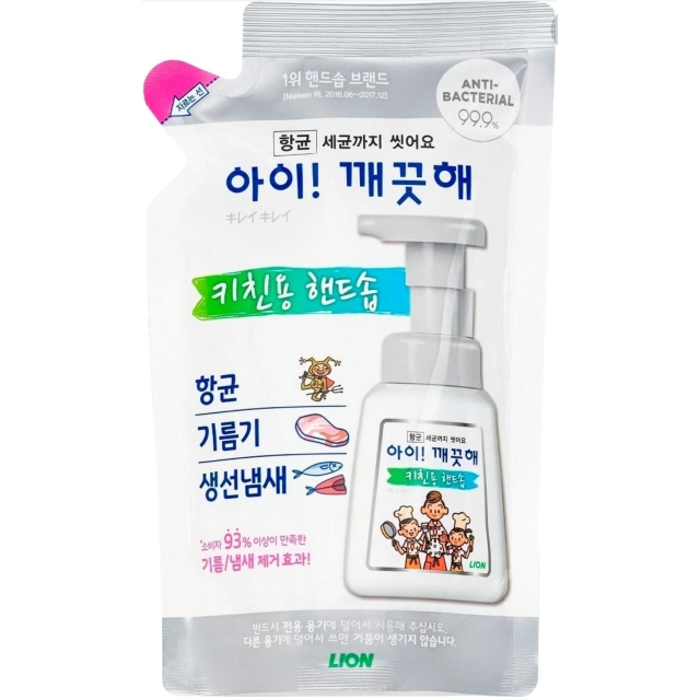 Жидкое пенное мыло для рук Lion на основе растительных компонентов с приятным ароматом мяты создает обильную пену. Подходит для всей семьи. Обильное облако пены бережно очищает и ароматизирует кожу рук, оставляя после мытья ощущение свежести и гладкости кожи, идеально подходит для приучения детей к мытью рук после прогулки. Пенное мыло эффективно устраняет неприятные запахи, в том числе от рыбы. Содержит мягкие, очищающие компоненты, природного происхождения, масло лимона и антибактериальный компонент IPMP с высокими очищающими свойствами (эффективен против кишечной палочки, золотистого стафилококка, бактерий типа О 157 и других вредных микробов). Кроме того, пенное мыло содержит специальную формулу, защищающую от вируса гриппа. Легко и полностью смывается. Способ применения, выдавить нужное количество средства на ладонь, намылить, смыть теплой водой. При необходимости повторить процедуру. Внимание, продукт предназначен для специальных правильно вспенивающих дозаторов.