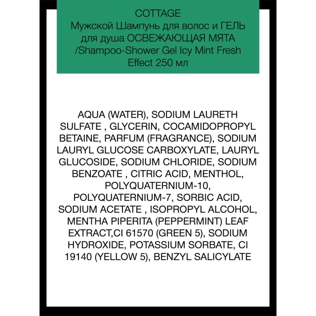 COTTAGE Мужской Шампунь для волос и ГЕЛЬ для душа ОСВЕЖАЮЩАЯ МЯТА
