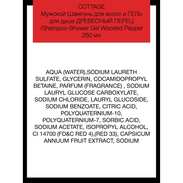 COTTAGE Мужской Шампунь для волос и ГЕЛЬ для душа ДРЕВЕСНЫЙ ПЕРЕЦ