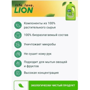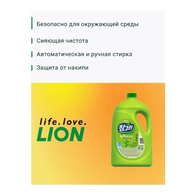 LION Cредство для м/посуды Chamgreen Зеленый чай 3100гр.