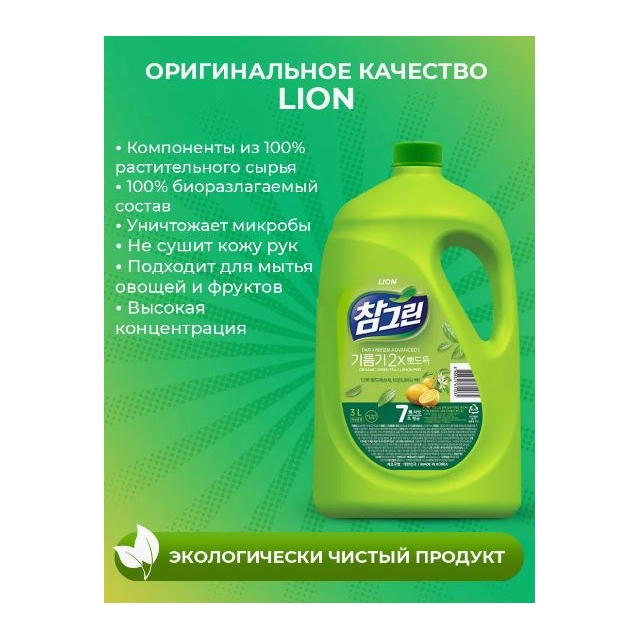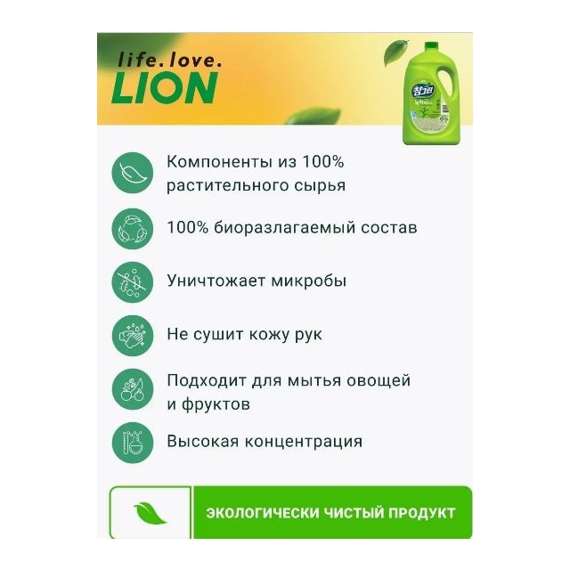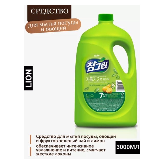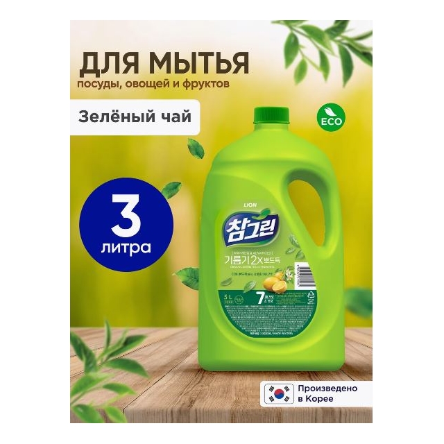 Средство CJ LION Chamgreen Зеленый чай и цедра лимона обеспечит безопасное мытье посуды, детских принадлежностей, овощей и фруктов, а так же кухонной утвари.