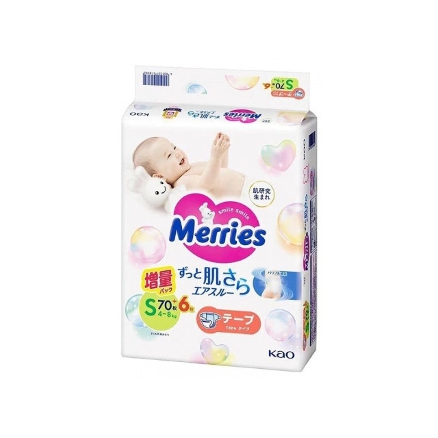 MERRIES Подгузники для детей размер S 4-8 кг 76 шт