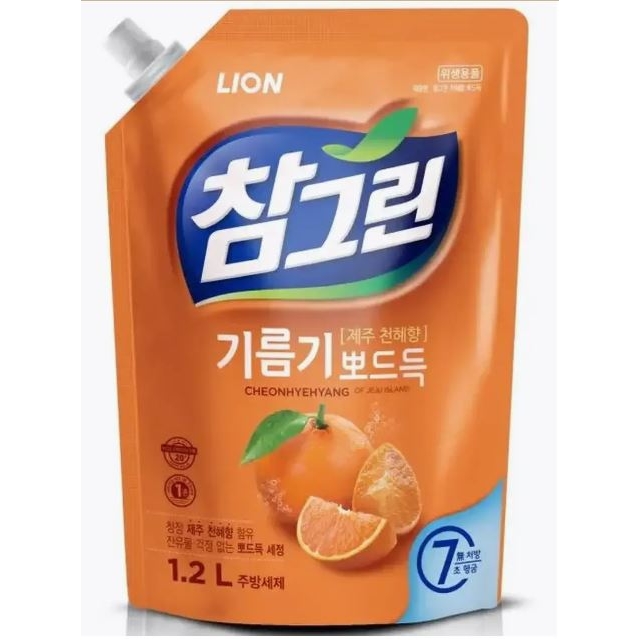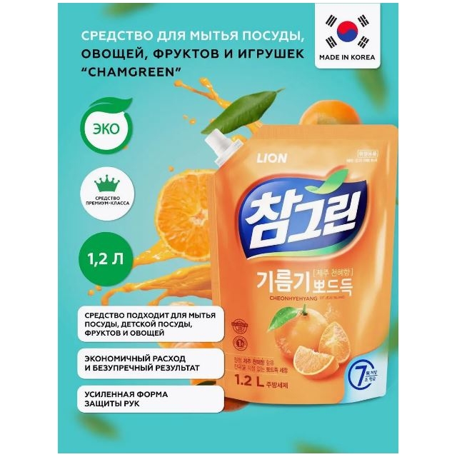 LION Cредство для м/посуды Chamgreen Мандарин(Tangerine) 1200гр запаска