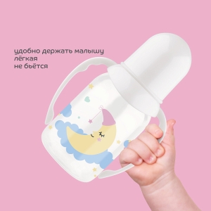 Бутылочка для кормления Just 125 мл с ручками, силиконовая соска, узкое горлышко