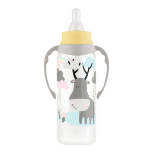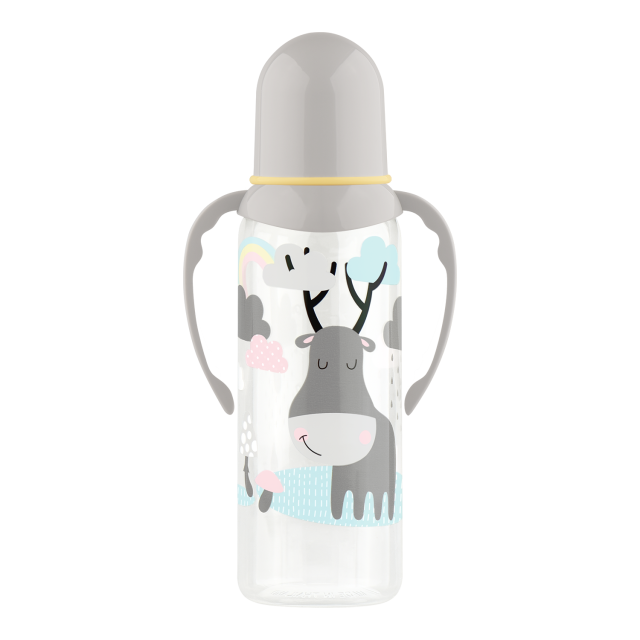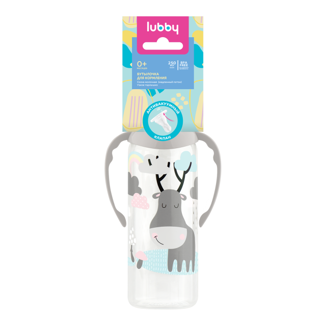 Lubby Бутылочка для кормления Just 250 мл с ручками, силиконовая соска, узкое горлышко