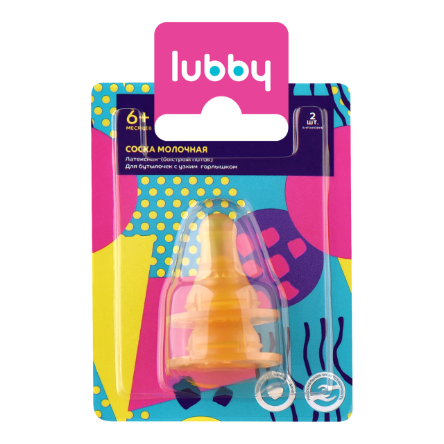 Lubby Латексная соска быстрого потока, 2 шт. от 6 месяцев