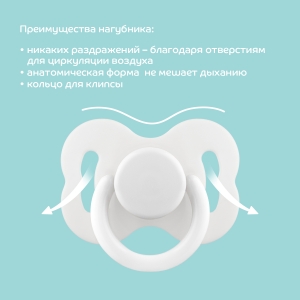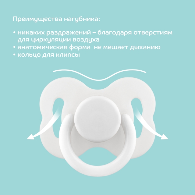 Симметричная форма нагубника с вентиляционными отверстиями обеспечивает свободную циркуляцию воздуха и снижает риск раздражения кожи