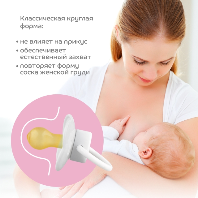 Круглый латексный сосок — мягкий и комфортный для младенца