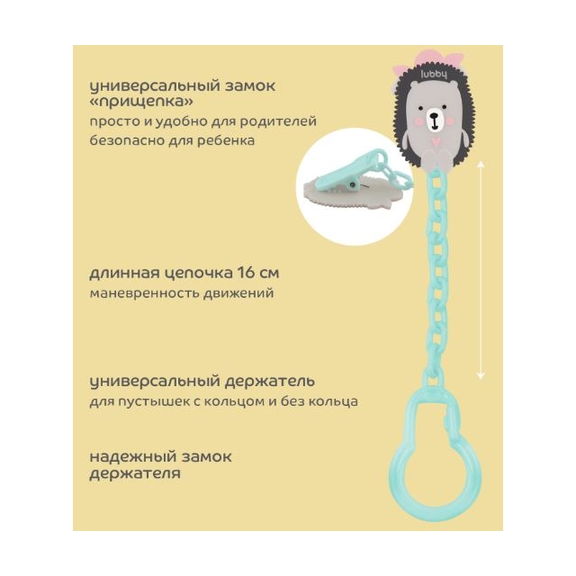 Lubby Клипса для пустышки Ёжик от 0 месяцев
