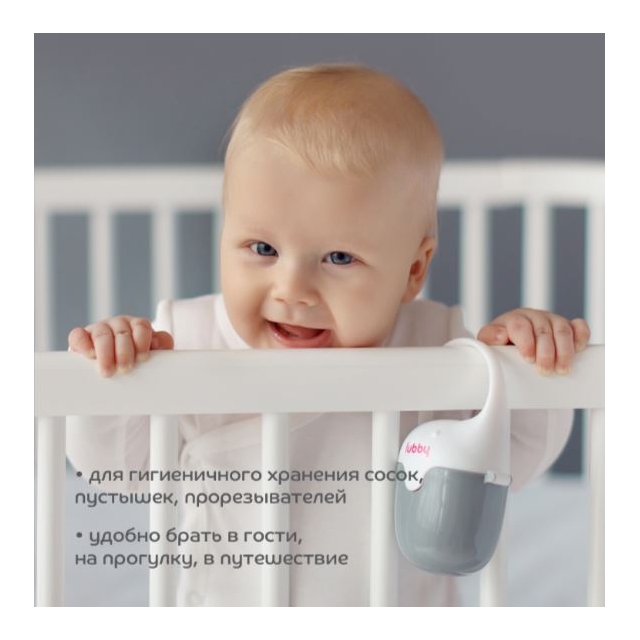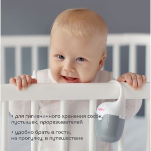 Футляр для пустышек разработан специально для гигиеничного хранения и переноски сосок и пустышек или прорезывателей во время прогулки, либо путешествия. Ручка с антискользящим покрытием позволяет легко крепить футляр за коляску, либо сумку.