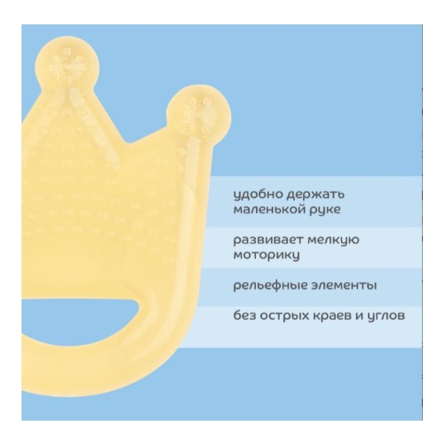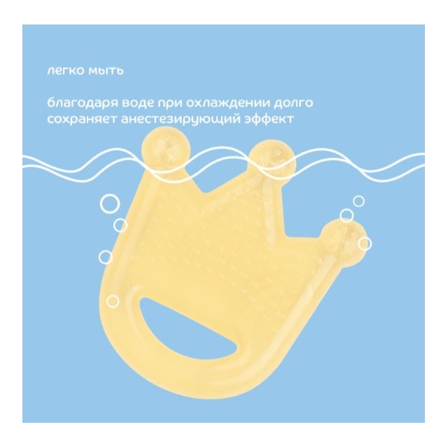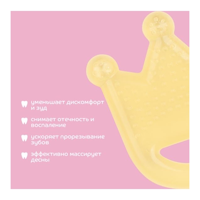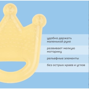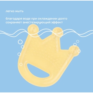 Прорезыватель поможет уменьшить неприятные ощущения во время прорезывания зубов. Благодаря текстурированной поверхности создается массажный эффект, успокаивающий раздражение. Содержит очищенную воду внутри. Для достижения дополнительного анестезирующего эффекта можно положить прорезыватель в холодильник на 10 минут. Подходит для всех стадий появления зубов.Изготовлен из безопасного материала и не содержит вредных веществ.