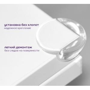 Прозрачные накладки на углы — надёжное средство для защиты малышей от острых углов мебели. Они имеют закруглённую форму и легко крепятся с помощью липкой основы. Универсальный дизайн позволяет использовать их на любом типе мебели и не нарушает общий интерьер помещения.