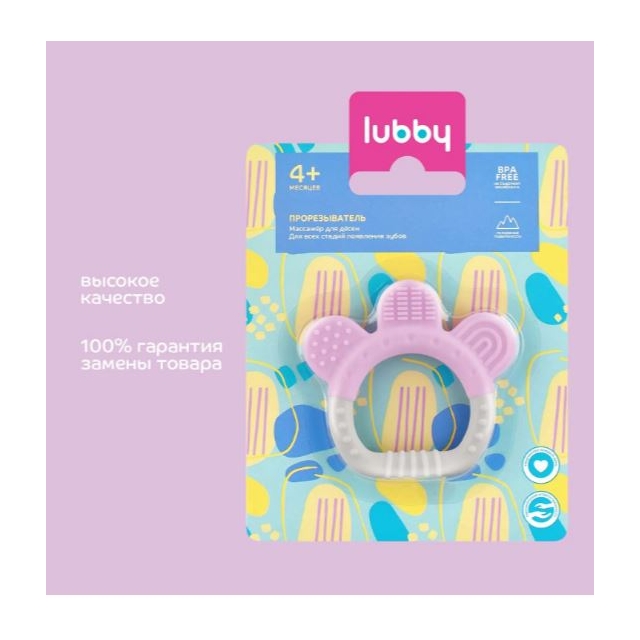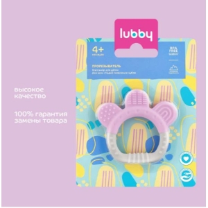 Прорезыватель lubby особенно востребована в период появления первых зубов у детей. Прорезыватель не содержит поверхностного окрашивания и имеет три вида рельефной поверхности.Форма создана специально для детских ручек.