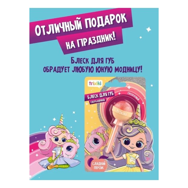 Такой бальзам для губ станет отличным дополнением к любому детскому набору косметики, идеально подойдёт для подарочного бокса товаров для макияжа на день рождение дочери, сестры, подруги, подростка, или в качестве подарка на 8 марта, Новый год или любой другой праздник. Подобный подарок для девочки вы можете собрать из других товаров нашего бренда TRIXIKI, добавив, например, Детский лак для ногтей "Розовое золото" артикул 1257680948 и другие милые штучки в подарок. Мы успешно развиваемся в создании качественной декоративной косметики для подростков и детей. Такая натуральная и милая косметика это оригинальный подарок для девочки, который порадует вашу юную модницу и станет её любимым аксессуаром для губ. Ведь прозрачные блески с блестками остаются всё такими же популярными косметическими средствам наравне с тинтами, маслами для губ и корейскими помадами.Состав