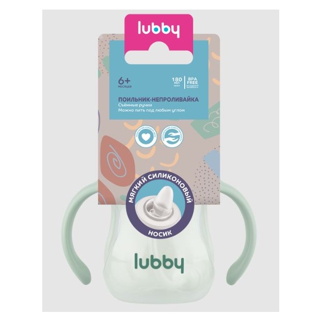 Lubby Поильник-непроливайка с мягким носиком, 180 мл. от 6 месяцев