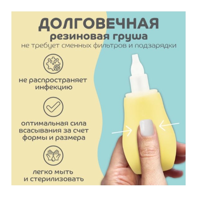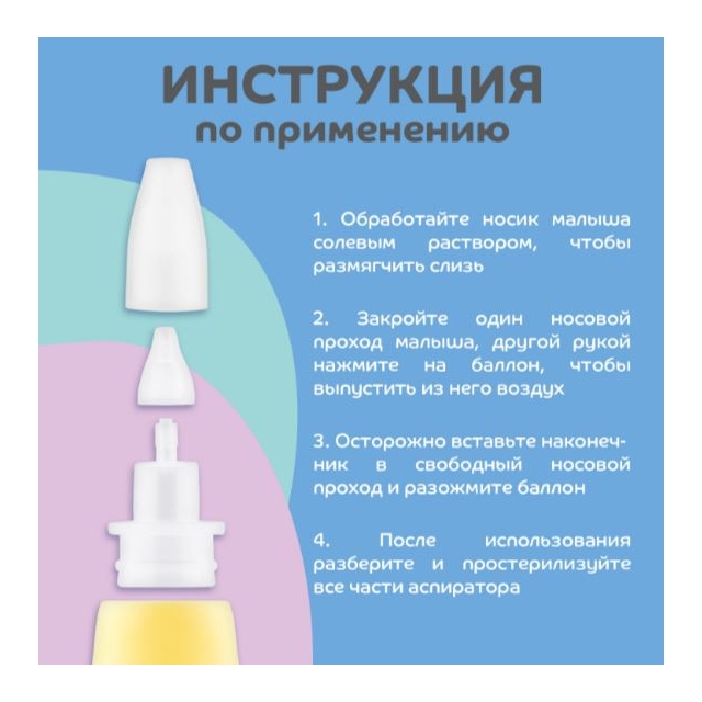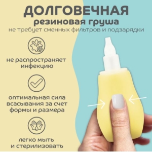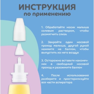 Аспиратор помогает очистить нос ребенка от слизистых выделений и облегчить дыхание. Прост в использовании и может применяться с самого рождения. Расширенное основание кончика аспиратора препятствует глубокому проникновению. Мягкий силиконовый кончик, поможет безболезненно удалить слизь из носика ребенка. Не требует сменных фильтров.Объем баллона аспираторов рассчитан на такое отрицательное давление (силу всасывания), которое не повредит слизистую и не распространит инфекцию.