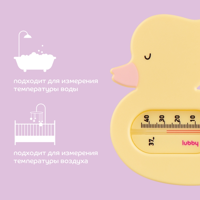Термометр lubby в ванную жидкостной прямого считывания предназначен для определения температуры воды в ванной. Позволяет определить температуру воды для комфортного купания ребенка. Удобная шкала и веселая форма уточки доставит радость малышу и родителям. Шкала выполнена из керосина, поэтому термометр полностью безопасен для Малыша. Изделие не содержит ртути, что позволяет ему оставаться на поверхности воды во время всего процесса купания.