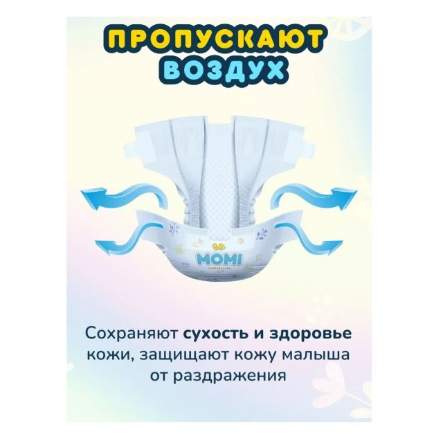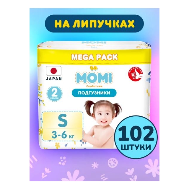 MOMI Comfort Care — это высококачественные подгузники, разработанные в Японии с заботой о здоровье и комфорте вашего малыша. Размер S предназначен для детей весом от 3 до 6 кг.