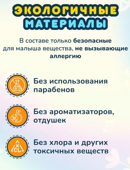 - Гипоаллергенные материалы: Безопасны для чувствительной кожи вашего малыша.