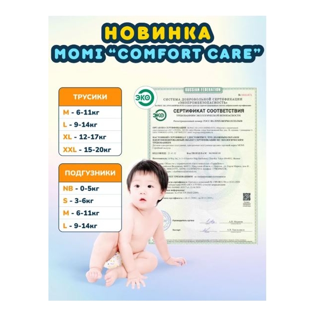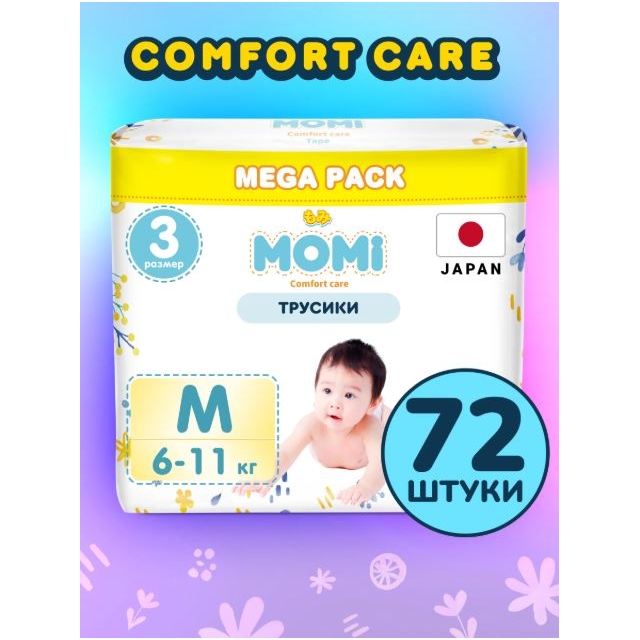 Выбирая подгузники-трусики MOMI Comfort Care, вы делаете выбор в пользу качества, комфорта и заботы о будущем вашего малыша. Это не просто подгузники, а символ любви и заботы о каждом моменте детства.
