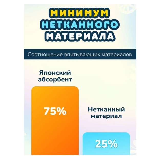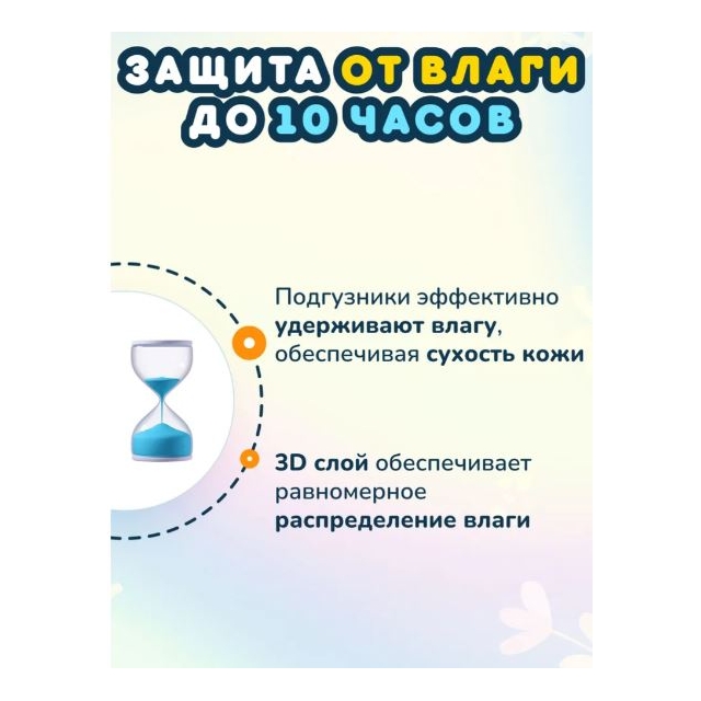 - Мгновенное впитывание: Технология, позволяющая быстро поглощать влагу и удерживать её, обеспечивая длительную сухость.