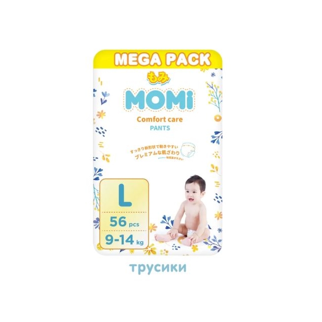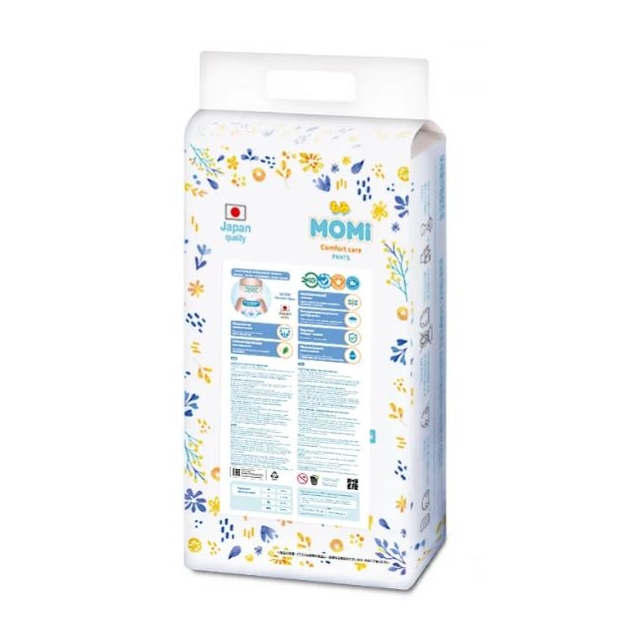 Японские подгузники трусики для малышей MOMI Comfort Care, разработаны в Японии, изготовлены с использованием самых качественных материалов.