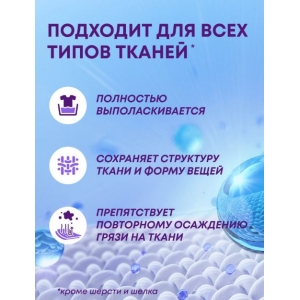 - Функциональные Агенты обеспечивает эффективную стирку даже в прохладной воде и на коротких циклах стиркиПодходит для стирки изделий из белых и цветных синтетических, хлопчатобумажных и льняных тканей, а также тканей из смешанных волокон.