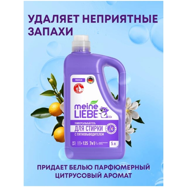 MEINE LIEBE Гель для стирки универсальный с пятновыводителем, концентрат, 5л