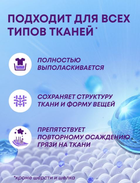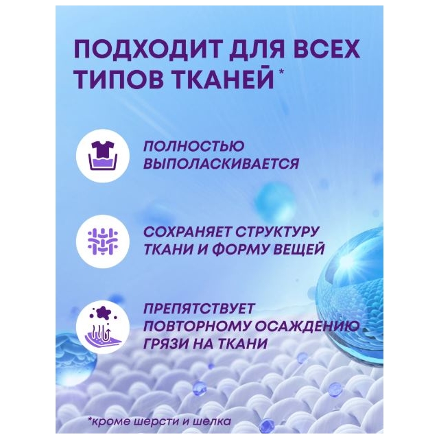 - комплекс ПАВ очищает и препятствует повторному осаждению грязи на ткань