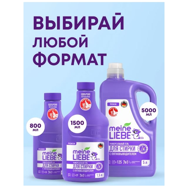 Meine Liebe — концентрированный гель для стирки 1.5 л. Эффективно удаляет загрязнения благодаря комплексу из 7 ферментов: справляется с белковыми, жировыми и крахмальными пятнами даже в прохладной воде и на коротких режимах. Подходит для ручной и машинной стирки белых и цветных тканей из хлопка, льна, синтетики и смешанных волокон. Безопасен для септиков. Не содержит фосфатов, фосфонатов и хлора. Биоразлагаемый состав. До 37 стирок. Свежий цитрусовый аромат. Удобный мерный колпачок и эргономичный флакон.