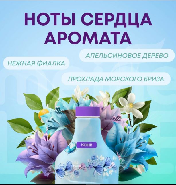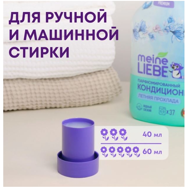 Парфюмированный кондиционер Meine Liebe с ароматом цветка апельсина, морского бриза и фиалки придаёт белью стойкий аромат свежести. Смягчает ткани, облегчает глажение, устраняет статическое электричество и сохраняет цвет.