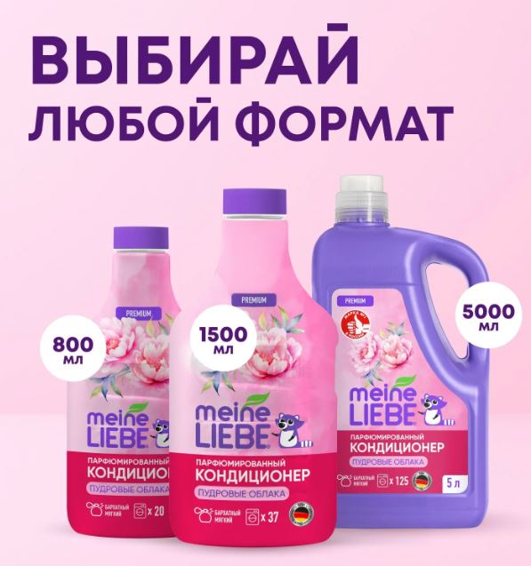 MEINE LIEBE Кондиционер для белья «Пудровые облака», концентрат, 1500мл