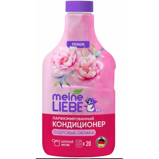 Премиальный кондиционер Meine Liebe «Пудровые облака» придаёт белью стойкий, элегантный аромат с нотами жасмина, магнолии, мускуса и амбры. Благодаря специальной формуле он смягчает ткани, облегчает глажение и помогает сохранить цвет и форму изделий.