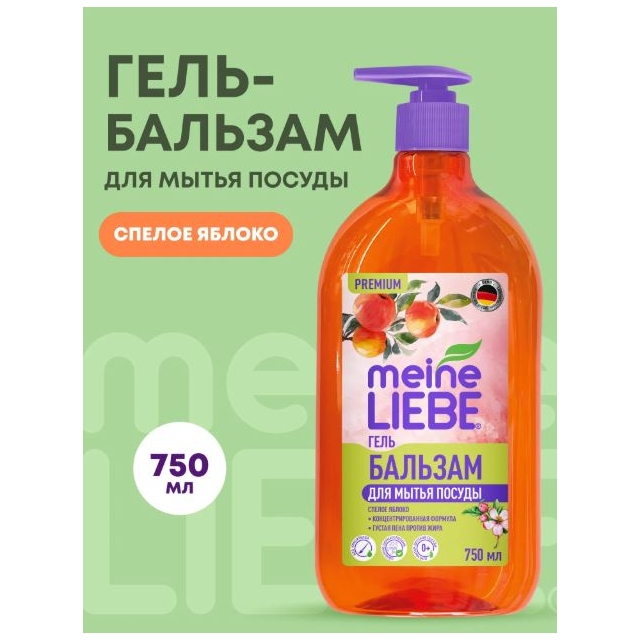 MEINE LIEBE Гель-бальзам для мытья посуды "Спелое Яблоко", концентрат,750мл