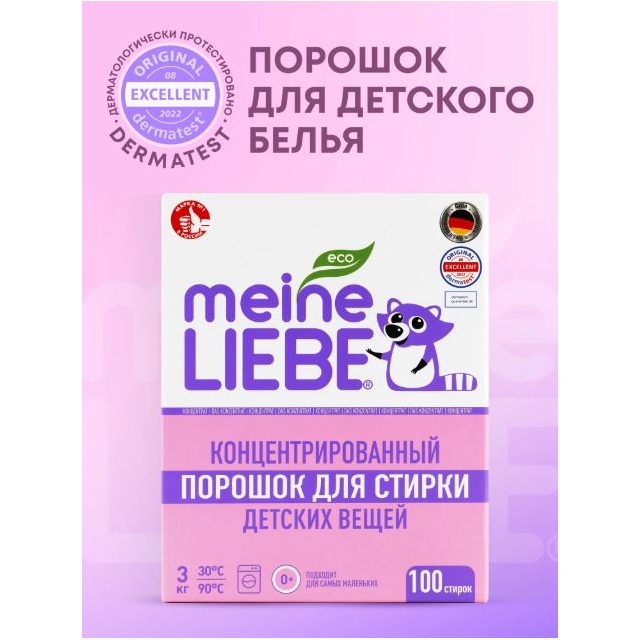Стиральный порошок для детского белья Meine Liebe (Майне Либе) - это гипоаллергенное и эффективное средство для бережного ухода за одеждой и постельным бельем вашего малыша. Наш порошок разработан специально для новорожденных на основе натуральных веществ (без отдушек и красителей), не содержит фосфатов, хлора и других агрессивных компонентов.