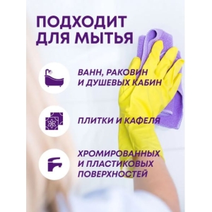 Средство для чистки сантехники 750 мл. Теперь еще больше блеска и сияния с обновленной формулой средства для уборки дома Meine Liebe! Экологичное средство на основе фруктовых кислот с распылителем обеспечивает безупречную чистоту и блеск ванны и ванных комнат, акриловых ванн, душевых кабин и стекол, джакузи, раковин, сантехники, унитаза, писсуаров, хромированных смесителей на кухне, а также кафеля, плитки, керамики, стекла, нержавеющей стали, пластмассы и других кислостойких поверхностей. Специальная формула средства для мытья ванны и душевых кабин позволяет бережно и эффективно удалять известковый налет, ржавчину, водный камень и мыльные разводы от шампуня/геля/кондиционера/пасты. Спрей антикальций для дома также обладает антибактериальным эффектом, что помогает бороться с микробами и неприятными запахами, оставляя свежей и чистой вашу сантехнику. Моющее средство нейтрализует неприятные запахи в ванной и туалете, оставляя свежий аромат лимона на поверхности. Спрей антиржавчина продлевает срок жизни сантехники при регулярном использовании. Эффективная концентрация фруктовых кислот в очистителе позволяет сокращать расход средства, быстро удаляя стойкие загрязнения с первого применения. Фирменный триггер имеет точечное распыление, а сам флакон удобно сидит в руке. В линейке также есть сменный блок/рефил с жидкостью чистки. Приобретая один раз спрей для чистки вам не нужно переплачивать за конструкцию триггера. ВНИМАНИЕ! Чистящее средство для ванны и душа не рекомендуется использовать на горячих или поврежденных поверхностях, а также на материалах, таких как мрамор, латунь, медь, алюминий, оцинкованный металл, натуральный камень, линолеум, резина и матовые или лакированные поверхности. Состав и упаковка товаров для уборки биоразлагаемые, не содержат хлора, фосфатов, фосфонатов не загрязняют окружающую среду и полностью соответствуют ЭКО-стандартам. Бытовая химия Meine Liebe также подходит для загородных домов и дач с автономными канализациями (септиками).