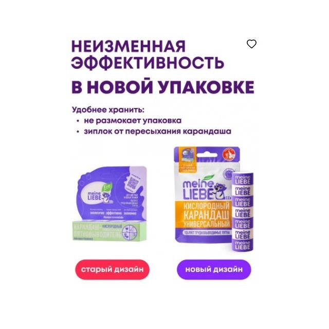 Легендарный карандаш-очиститель пятновыводитель от Meine Liebe теперь в новой практичной упаковке. Подходит для любых натуральных или синтетических нелиняющих тканей. Подходит для стирки детских вещей с рождения, благодаря специальной формуле и безопасному составу. Удаляет: - пятна от еды и напитков: кофе, чая, ягод, соков, жира - бытовые пятна от: шариковой ручки, красок, чернил, ржавчины - белковые и сложные ежедневные загрязнения: желтые следые от пота и дезодоранта, пятна крови, загрязнения на манжетах и воротниках рубашек -пятна от лекарственных средств: сиропов, йода и даже зеленки! Точечная предварительная обработка сложных пятен на одежде, застирывания воротничков и манжет. Очищение подошвы кроссовок и кед. Регулярная уборка: чистка ковров, мебели, очищение кухонной столешницы. Подходит для стирки детской одежды. Удаляет трудновыводимые пятна.